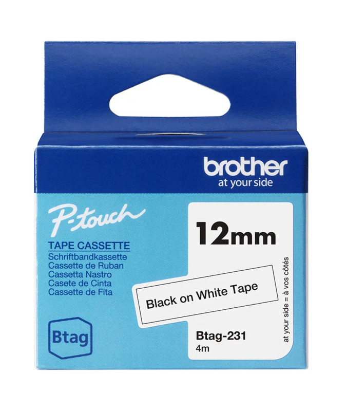 ОЕМ лента Brother BTAG-231, 12 мм черная на белом